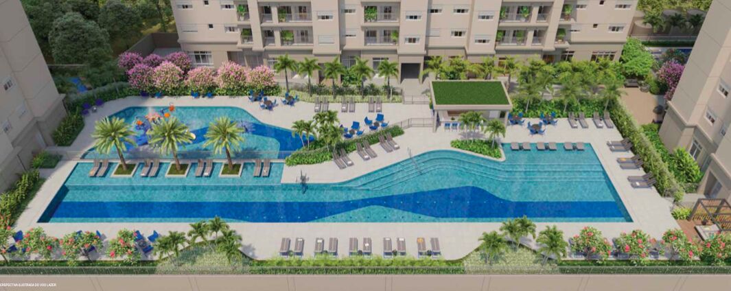 - Piscinas: Piscina adulto com raia de 50 metros, bar molhado e deck solarium.