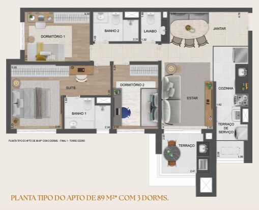 Configuração da Planta (89 m²)